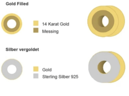Gold filled ("mit Gold gefüllt") ist ein Begriff für Schmuckkomponenten, die aus einem Messing-Kern mit einer