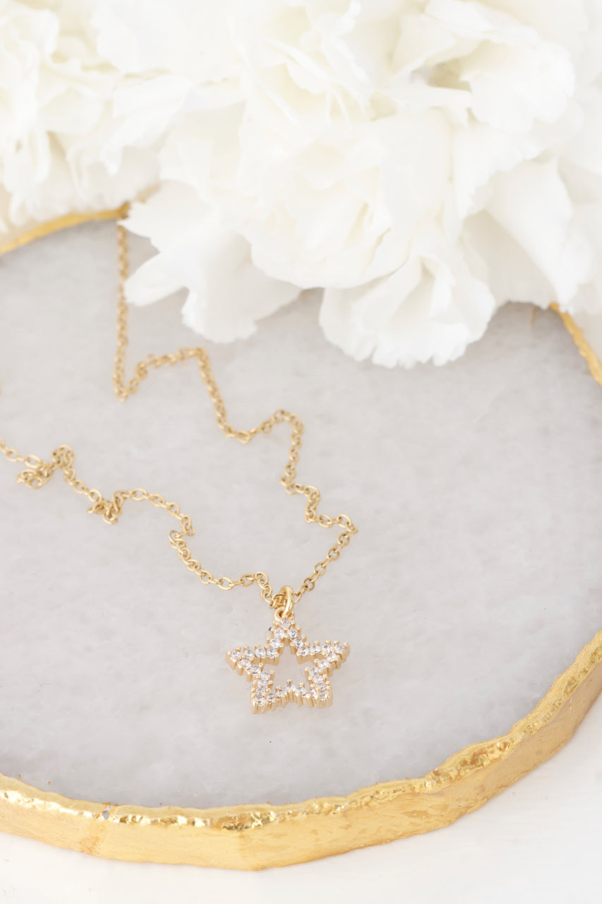 Material: Kettchen aus echt vergoldetem Edelstahl, Sterne aus echt vergoldetem Messing mit Zirkoniasteinen.
