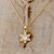 Material: Threaderkettchen aus vergoldetem Edelstahl, Anhänger aus vergoldetem Messing mit Zirkoniasteinen.